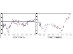 Atendiendo a las tasas de crecimiento interanuales, todos los indicadores individuales que forman parte del Ind-ALDE salvo los afiliados muestran un leve retroceso respecto a los meses anteriores. La producción industrial, las ventas y la renta suben 2,6% y 2.8% y 5,0 en abril, respecto las subidas de 5,1%, 6,9% y 5,1& en marzo, respectivamente. Los afiliados crecieron un 3,6% en mayo frente a la subida de 3,4% en abril.